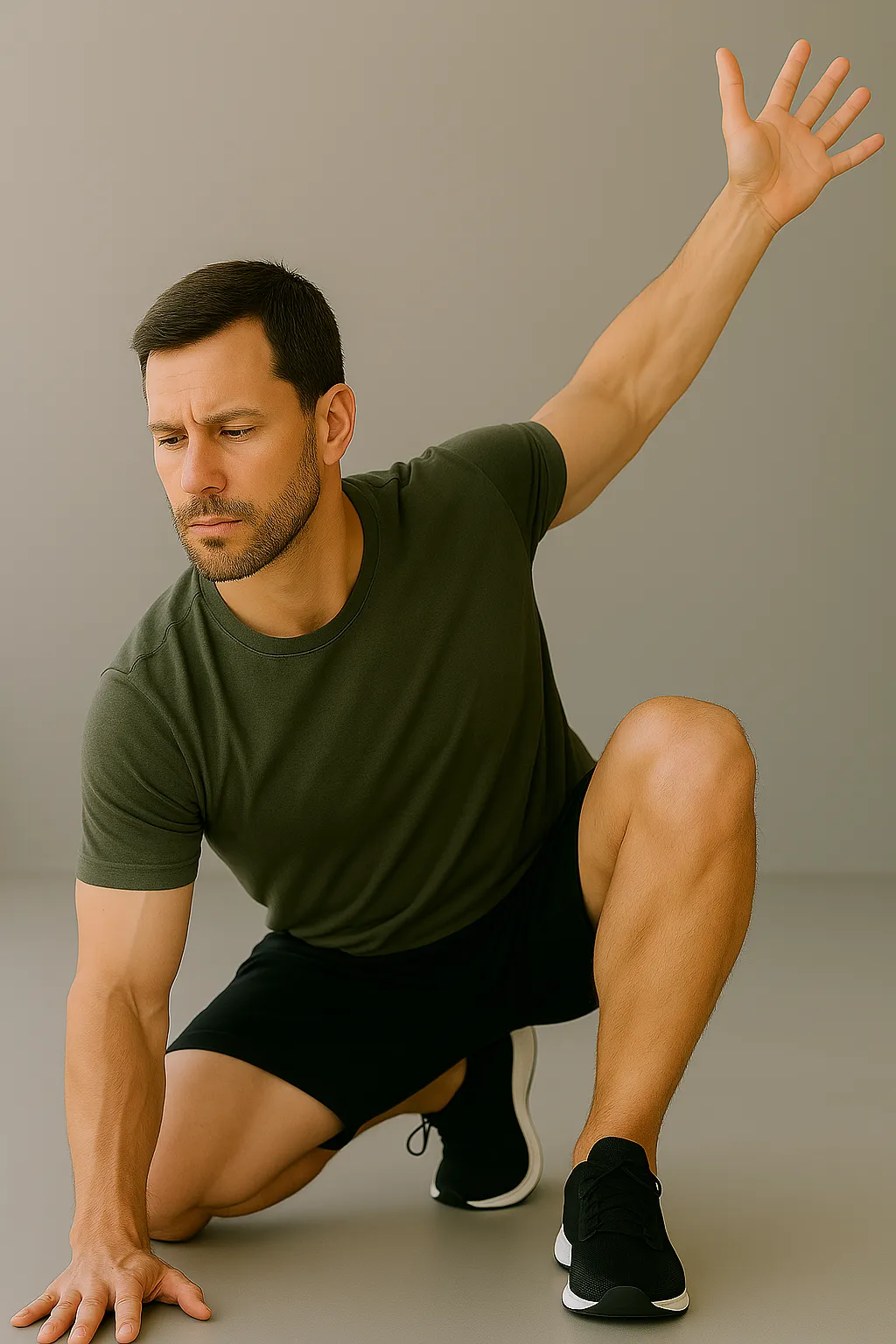 Creates motion through different fascial lines and pairs it with breath-work for interconnected movement.